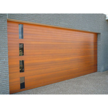 창 방풍 마감 표면 별장이있는 현대적인 디자인 자동 차고 문 우드 그레인 패턴